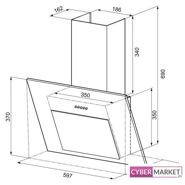 конструкция купольная, монтаж настенный, ширина 60 см, управление механическое/кнопочное, производительность мотора 400 м³/ч, цвет нержавеющая сталь