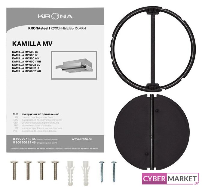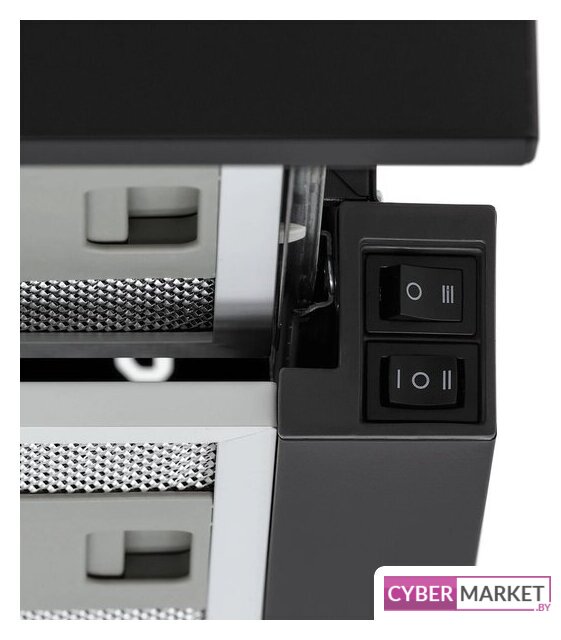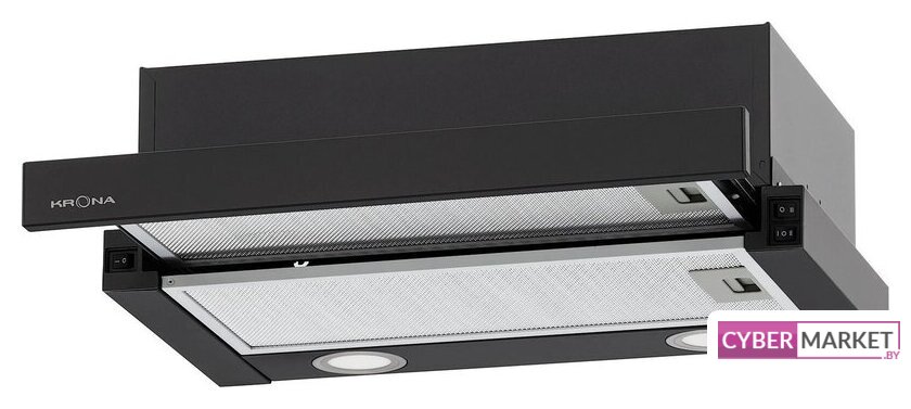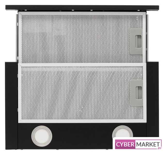 конструкция телескопическая, монтаж для встраивания, ширина 50 см, управление механическое/кнопочное, производительность мотора 449 м³/ч, цвет черный
