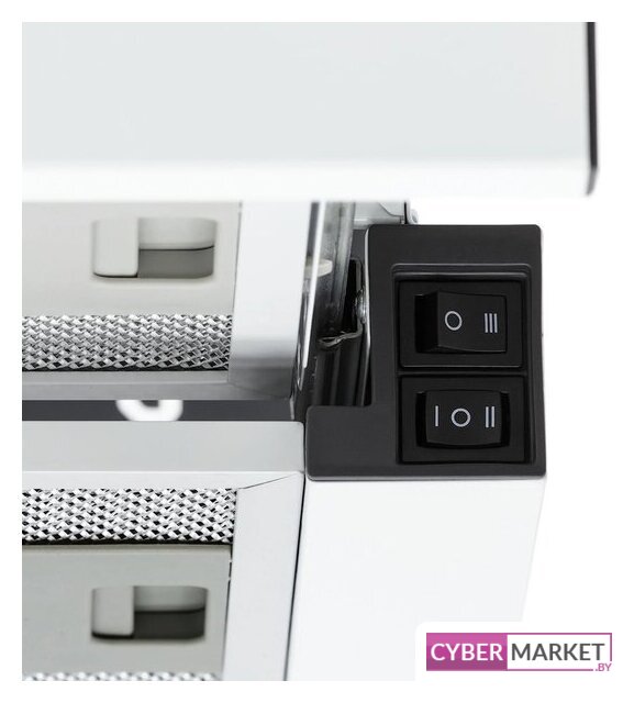 конструкция плоская, монтаж настенный/для встраивания, управление кнопочное, производительность вытяжки 166 м³/ч, производительность мотора 220 м³/ч, ширина 60 см