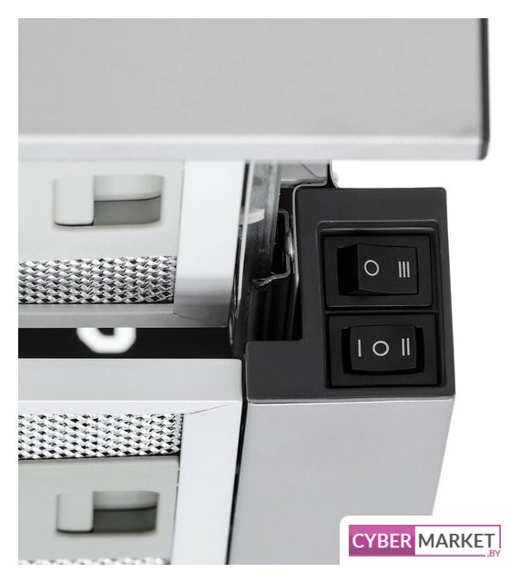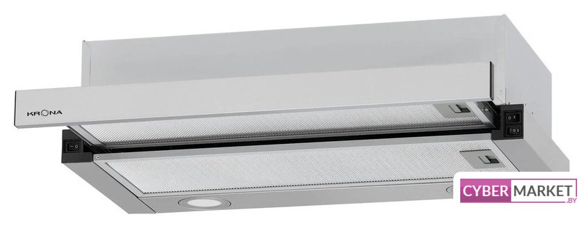 конструкция телескопическая, монтаж для встраивания, ширина 50 см, управление механическое/кнопочное, производительность мотора 750 м³/ч, цвет нержавеющая сталь