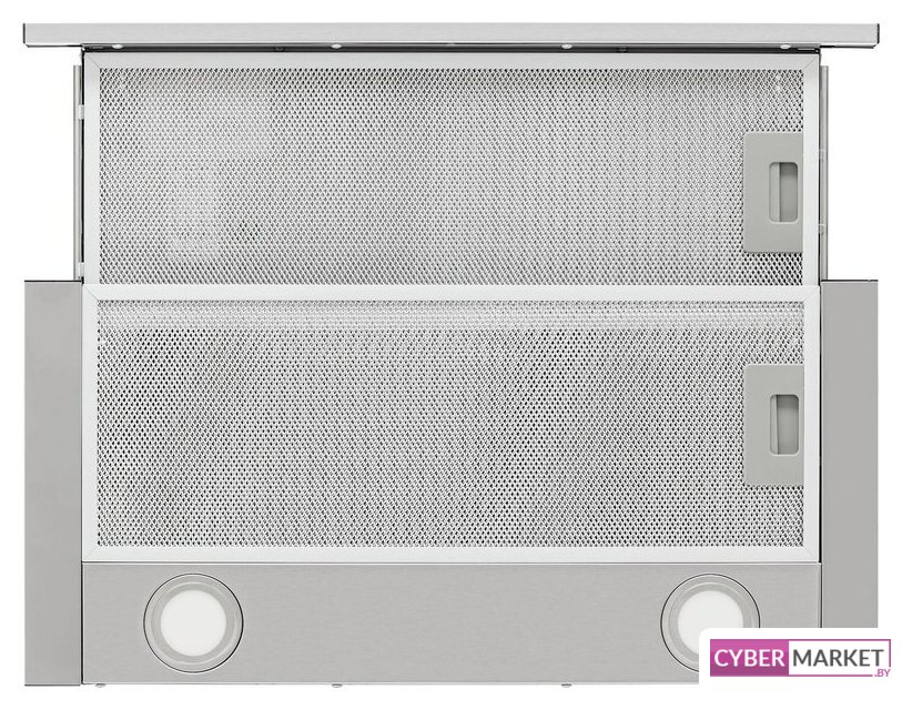 конструкция телескопическая, монтаж для встраивания, ширина 60 см, управление механическое/кнопочное, производительность мотора 750 м³/ч, цвет нержавеющая сталь