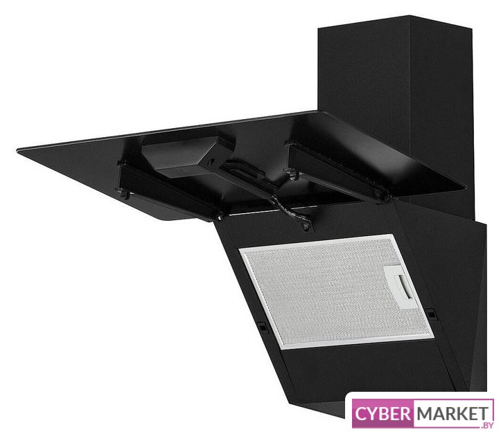 конструкция скрытая, монтаж для встраивания, ширина 52.5 см, управление механическое/кнопочное, производительность мотора 550 м³/ч, цвет черный