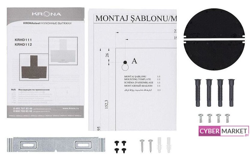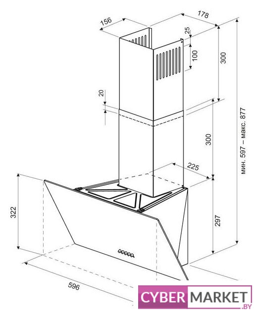 конструкция наклонная, монтаж настенный, ширина 60 см, управление механическое/кнопочное, производительность мотора 850 м³/ч, цвет черный