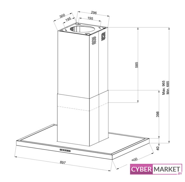 конструкция коробчатая, монтаж настенный, ширина 40.2 см, управление электронное/кнопочное, производительность мотора 1150 м³/ч, цвет бежевый