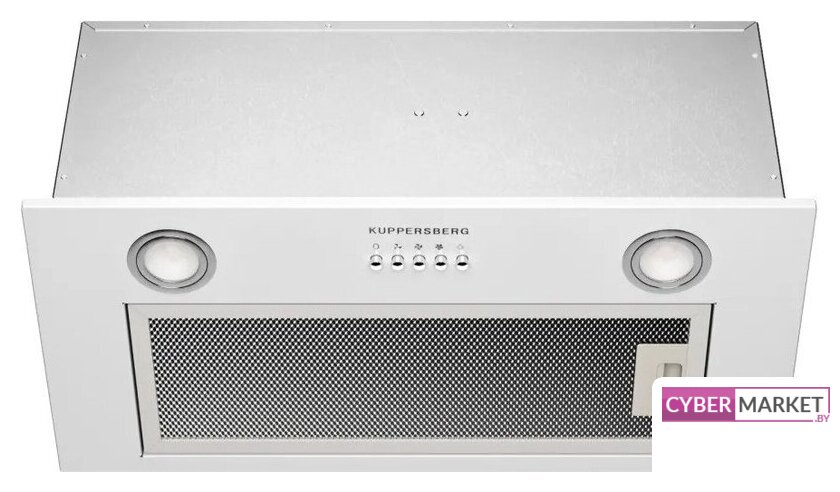 конструкция скрытая, монтаж для встраивания, ширина 52.5 см, управление механическое/кнопочное, производительность вытяжки 1000 м³/ч, производительность мотора 1000 м³/ч, цвет белый