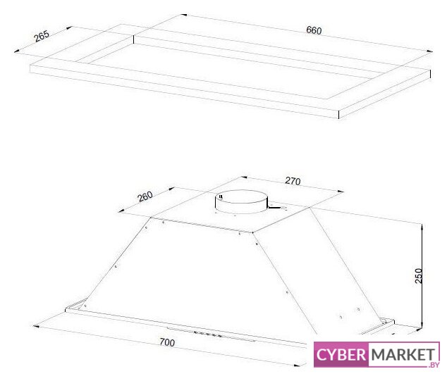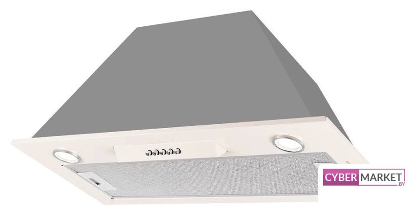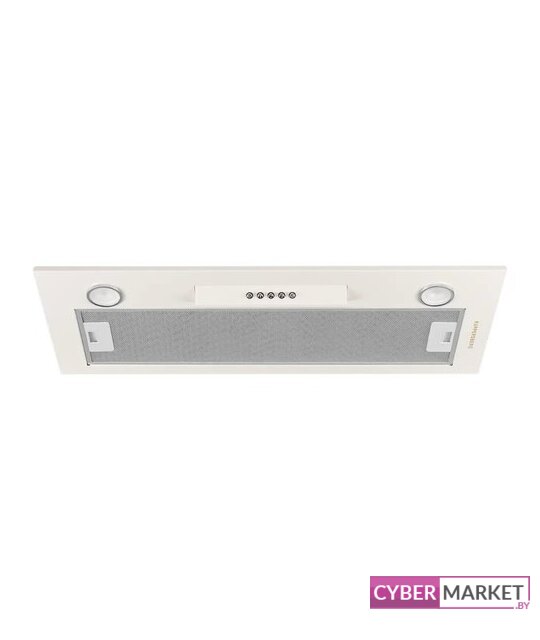 конструкция скрытая, монтаж для встраивания, ширина 59.8 см, управление механическое/кнопочное, производительность мотора 1050 м³/ч, цвет белый