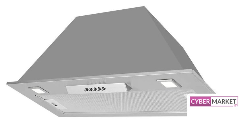 конструкция скрытая, монтаж для встраивания, ширина 53 см, управление электронное/кнопочное, производительность мотора 850 м³/ч, цвет белый/нержавеющая сталь