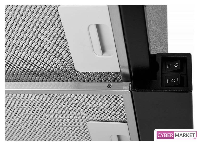 конструкция купольная, монтаж настенный, ширина 60 см, управление механическое/кнопочное, производительность мотора 750 м³/ч, цвет черный
