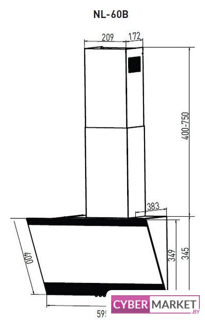 конструкция наклонная, монтаж настенный, ширина 60 см, управление сенсорное, производительность мотора 780 м³/ч, цвет черный