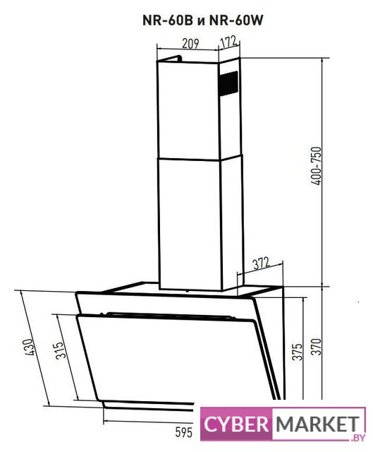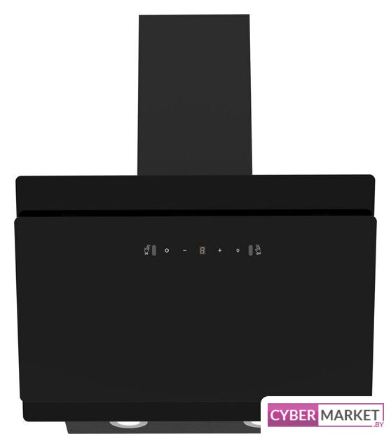 конструкция Т-образная, монтаж настенный, ширина 60 см, управление сенсорное/дистанционное, производительность вытяжки 1100 м³/ч, производительность мотора 950 м³/ч, цвет черный