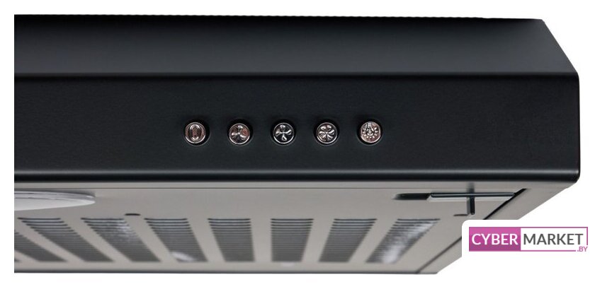 конструкция скрытая, монтаж для встраивания, ширина 42 см, управление механическое/кнопочное, производительность мотора 450 м³/ч, цвет черный