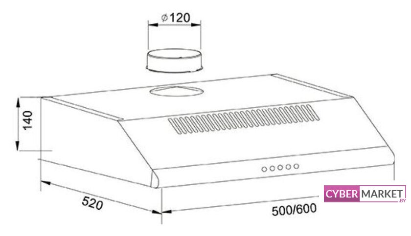 конструкция телескопическая, монтаж для встраивания, ширина 60 см, управление механическое/кнопочное, производительность мотора 500 м³/ч, цвет бежевый