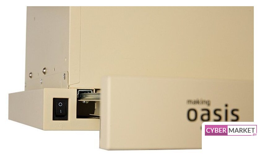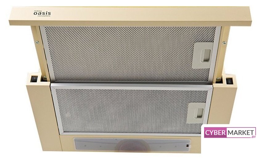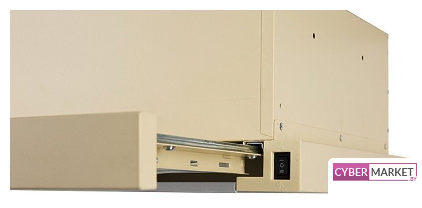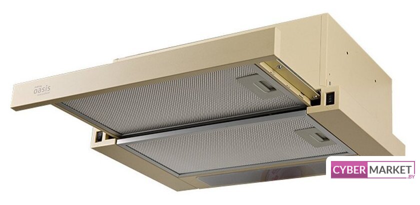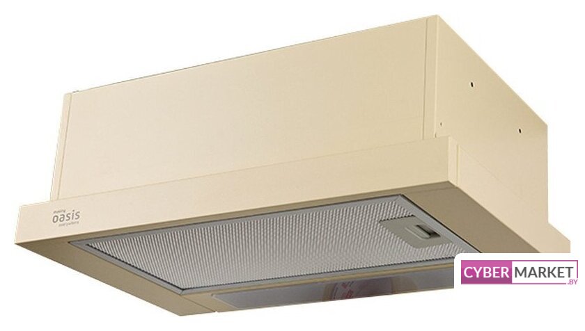конструкция плоская, монтаж настенный, ширина 50 см, управление механическое/кнопочное, производительность мотора 450 м³/ч, цвет бежевый