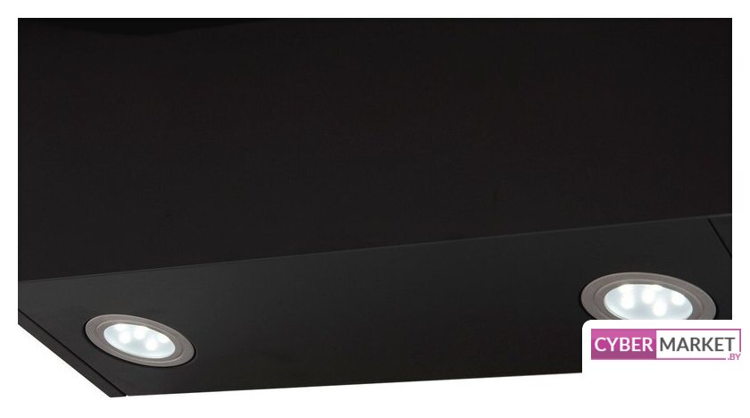 конструкция наклонная, монтаж настенный, ширина 59 см, управление сенсорное, производительность вытяжки 1000 м³/ч, цвет черный