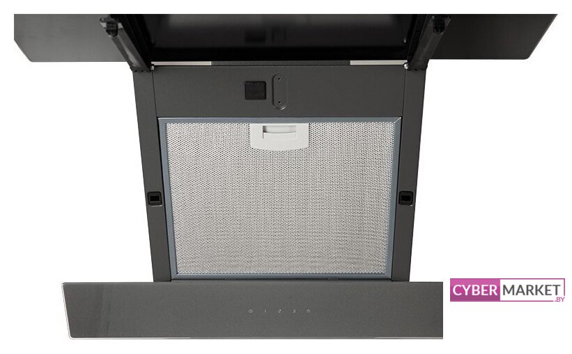 конструкция наклонная, монтаж настенный, ширина 60 см, управление сенсорное, производительность мотора 1000 м³/ч, цвет черный