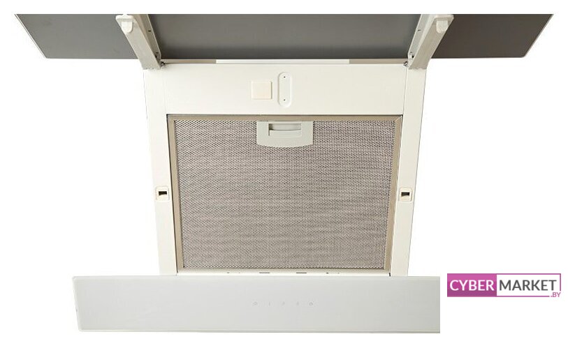конструкция скрытая, монтаж для встраивания, ширина 59.8 см, управление сенсорное/дистанционное, производительность мотора 1200 м³/ч, цвет белый