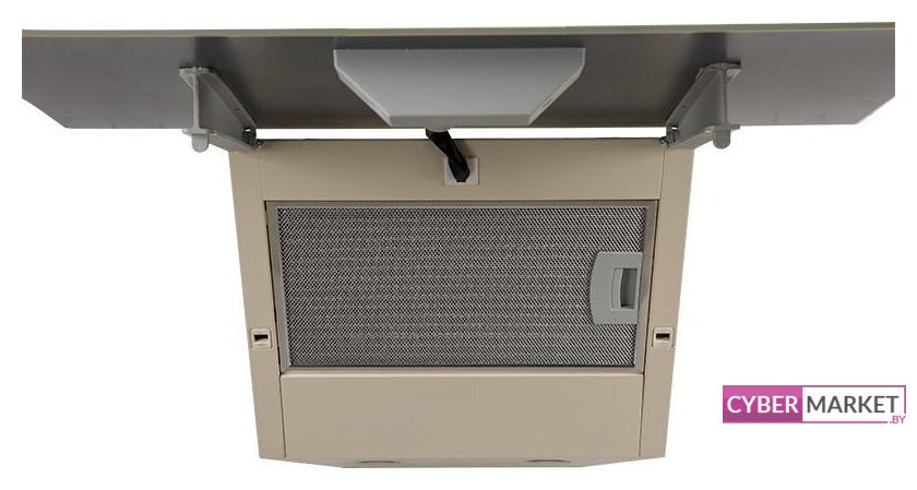 конструкция скрытая, монтаж для встраивания, ширина 53 см, управление механическое/кнопочное, производительность мотора 1100 м³/ч, цвет белый/нержавеющая сталь