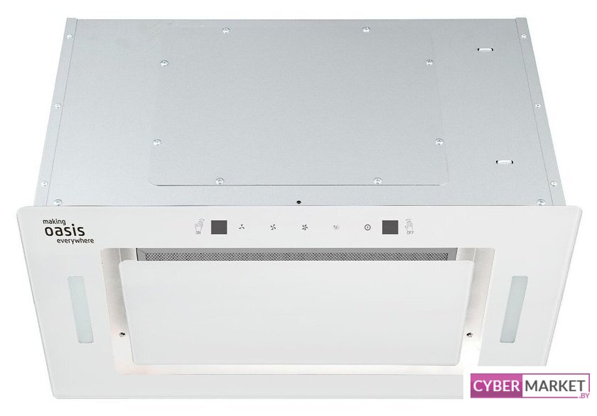 конструкция наклонная, монтаж настенный, ширина 59 см, управление механическое/кнопочное, производительность вытяжки 1000 м³/ч, цвет белый