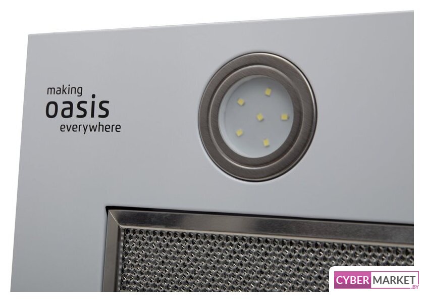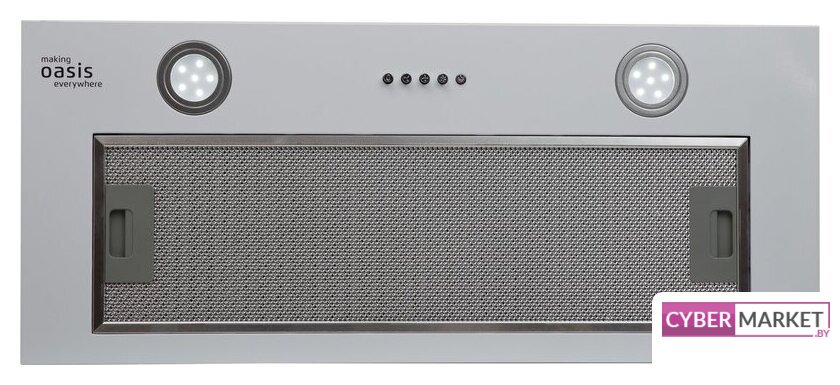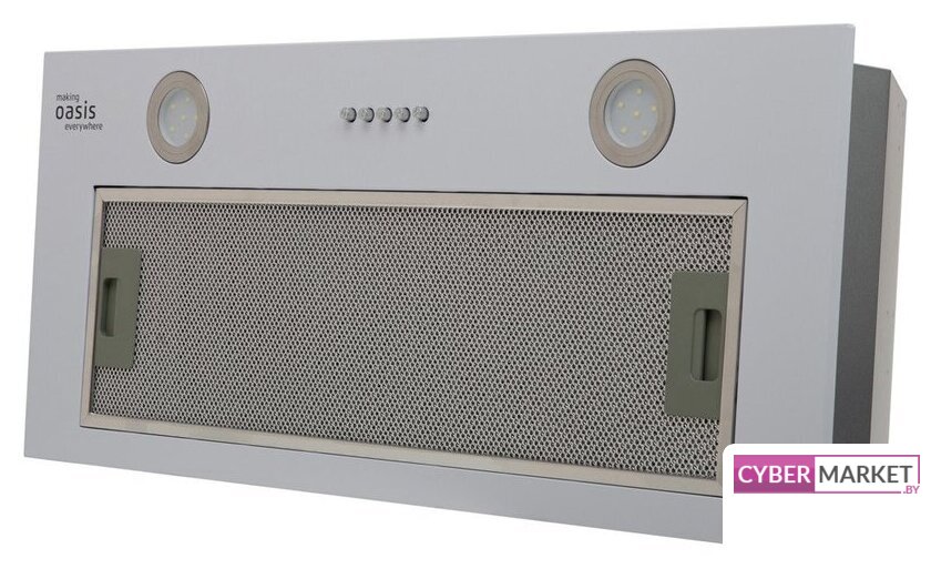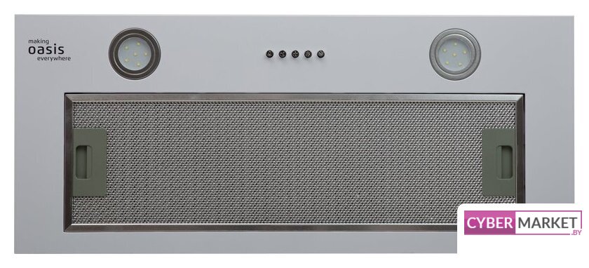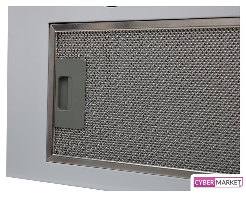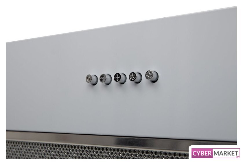конструкция скрытая, монтаж для встраивания, ширина 59.8 см, управление механическое/кнопочное, производительность мотора 850 м³/ч, цвет белый