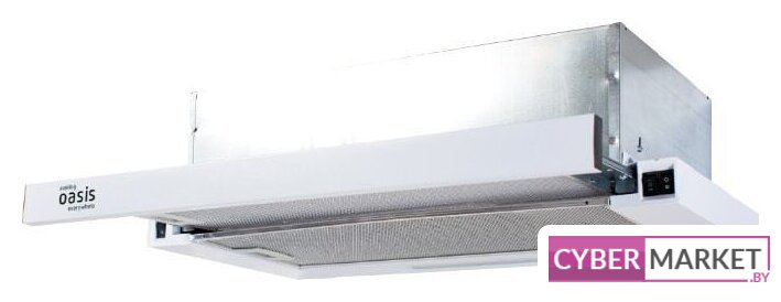конструкция телескопическая, монтаж для встраивания, ширина 60 см, управление механическое/кнопочное, производительность мотора 430 м³/ч, цвет белый