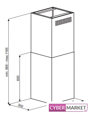 конструкция Т-образная, монтаж настенный, управление электронное/кнопочное, производительность мотора 1200 м³/ч, ширина 60 см