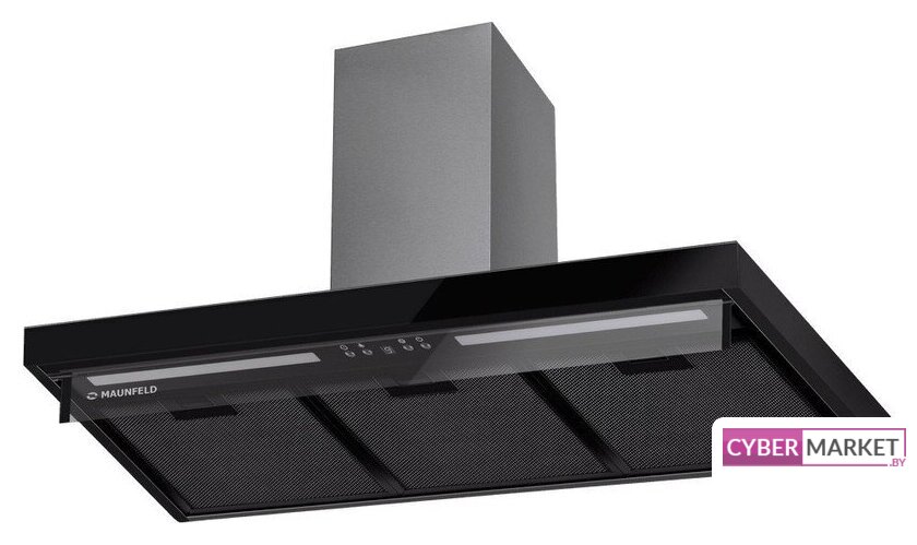 конструкция коробчатая, монтаж настенный, ширина 38 см, управление электронное/кнопочное, производительность мотора 1200 м³/ч, цвет черный