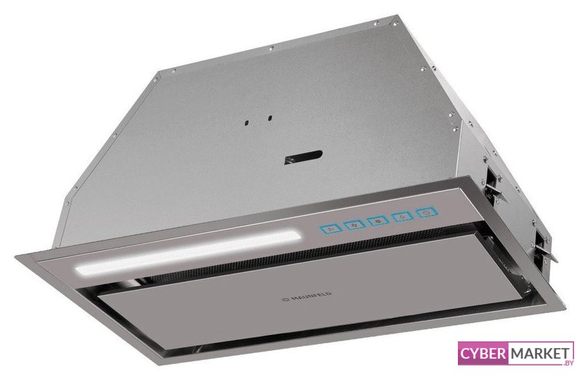 конструкция скрытая, монтаж для встраивания, ширина 73 см, управление электронное/кнопочное, производительность мотора 1250 м³/ч, цвет нержавеющая сталь/черный