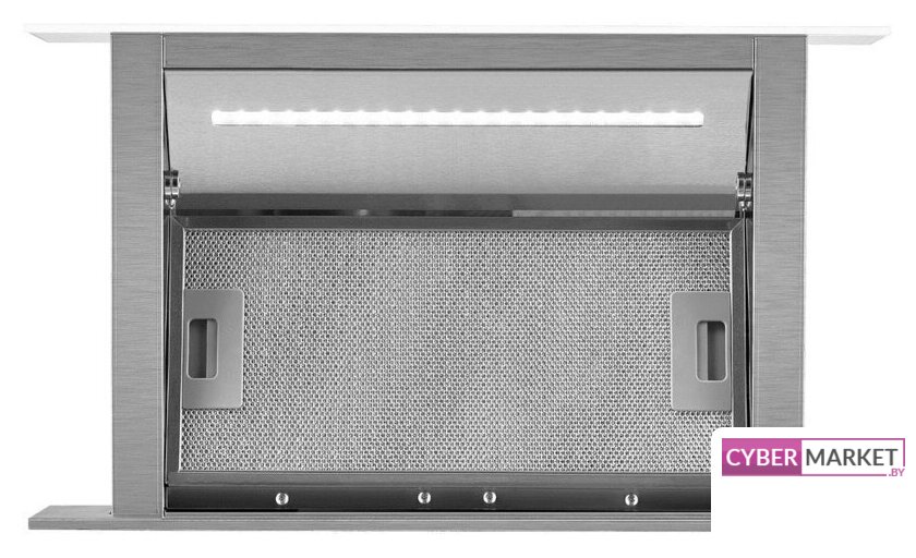 конструкция скрытая, монтаж для встраивания, ширина 71.4 см, управление электронное/кнопочное, производительность вытяжки 600 м³/ч, производительность мотора 1300 м³/ч, цвет белый/нержавеющая сталь