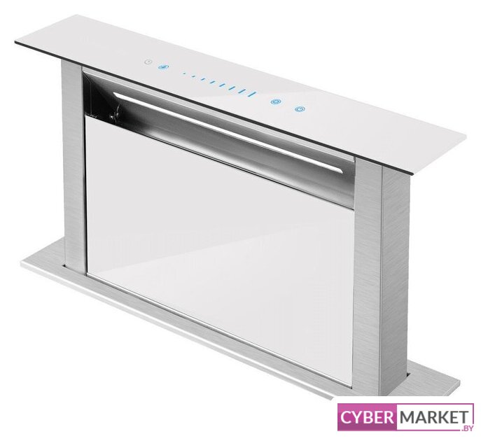 конструкция наклонная, монтаж настенный, ширина 85 см, управление сенсорное, производительность вытяжки 500 м³/ч, цвет белый/нержавеющая сталь