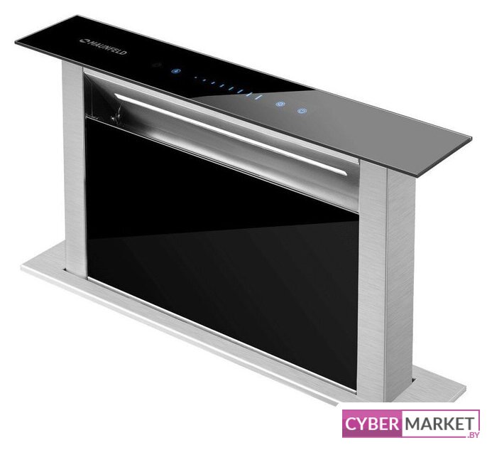 конструкция коробчатая, монтаж островной, ширина 38.2 см, управление жестами/дистанционное, производительность мотора 1270 м³/ч, цвет черный