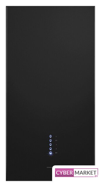 конструкция Т-образная, монтаж островной, ширина 90 см, управление сенсорное, производительность мотора 1250 м³/ч, цвет черный