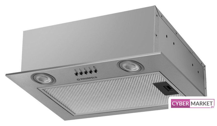 конструкция скрытая, монтаж для встраивания, ширина 52.5 см, управление механическое/кнопочное, производительность вытяжки 400 м³/ч, производительность мотора 400 м³/ч, цвет нержавеющая сталь