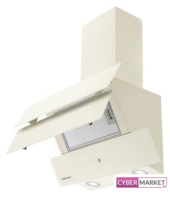 конструкция купольная, монтаж настенный, ширина 59.8 см, управление механическое/кнопочное, производительность мотора 650 м³/ч, цвет белый/серебристый
