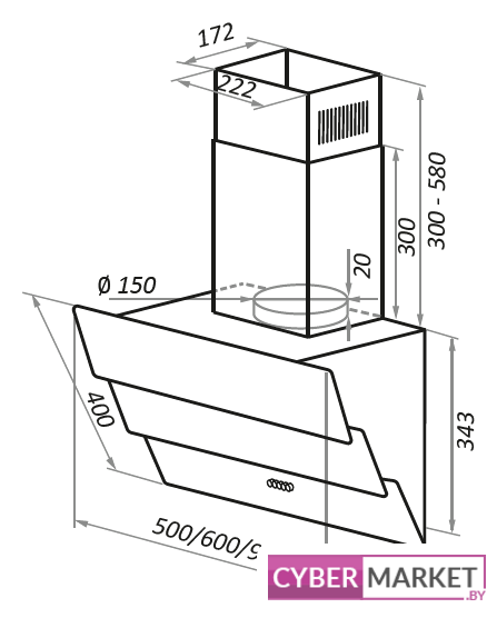 конструкция наклонная, монтаж настенный, ширина 60 см, управление сенсорное, производительность вытяжки 500 м³/ч, цвет белый
