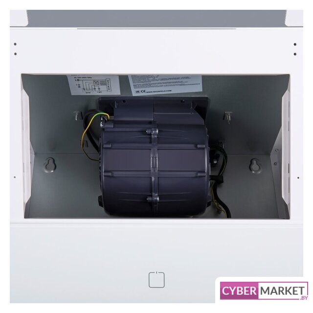 конструкция скрытая, монтаж для встраивания, ширина 59.8 см, управление электронное, производительность мотора 750 м³/ч, цвет белый