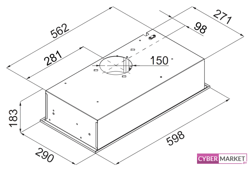 конструкция наклонная, монтаж настенный, ширина 60 см, управление механическое/кнопочное, производительность мотора 850 м³/ч, цвет черный