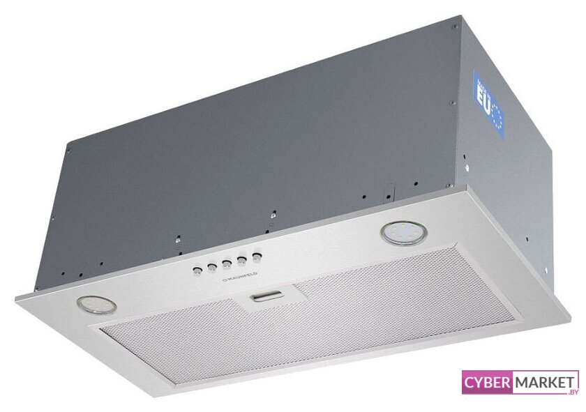 конструкция скрытая, монтаж для встраивания, ширина 49.8 см, управление механическое/кнопочное, производительность мотора 1050 м³/ч, цвет белый