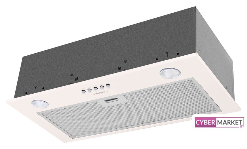конструкция скрытая, монтаж для встраивания, ширина 53.5 см, управление механическое/кнопочное, производительность мотора 750 м³/ч, цвет белый