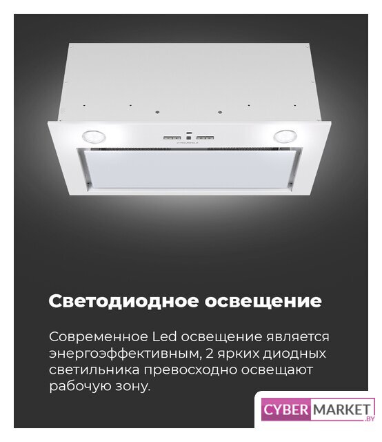 конструкция купольная, монтаж настенный, управление электронное/кнопочное, производительность мотора 950 м³/ч, ширина 60 см
