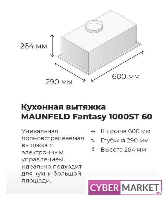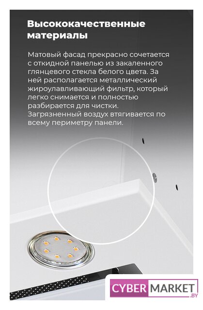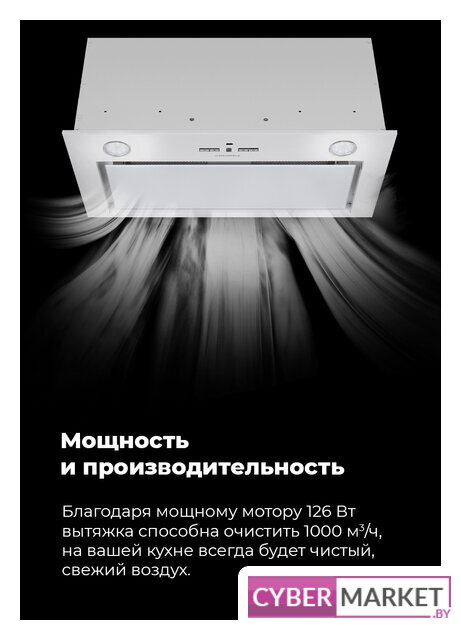 конструкция коробчатая, монтаж островной, ширина 35.15 см, управление электронное/кнопочное, производительность мотора 1050 м³/ч, цвет белый