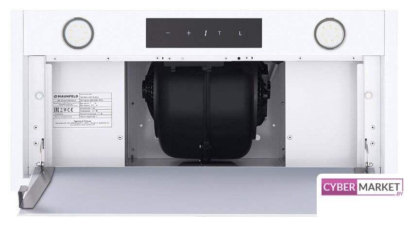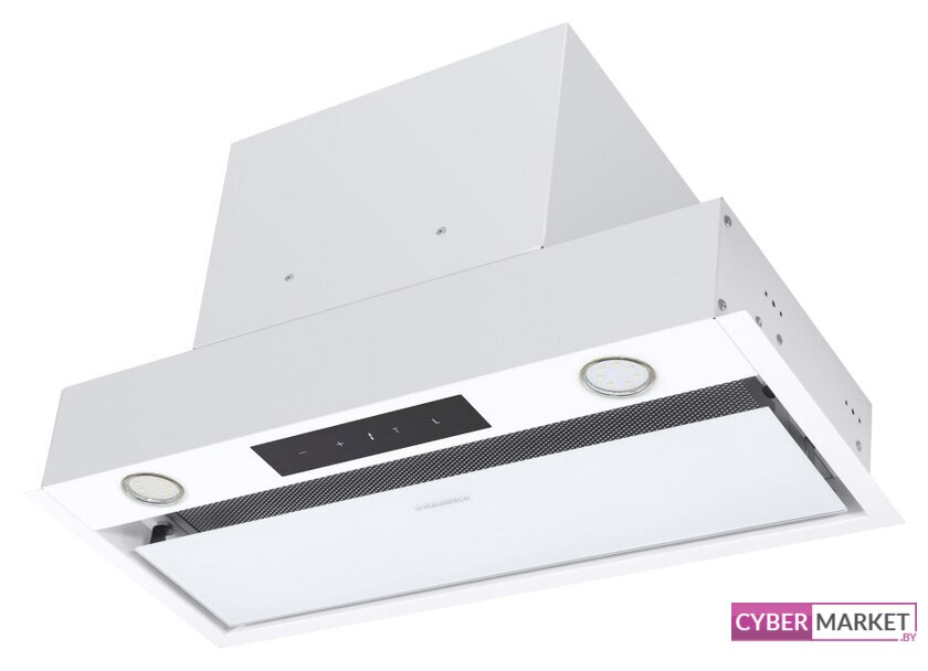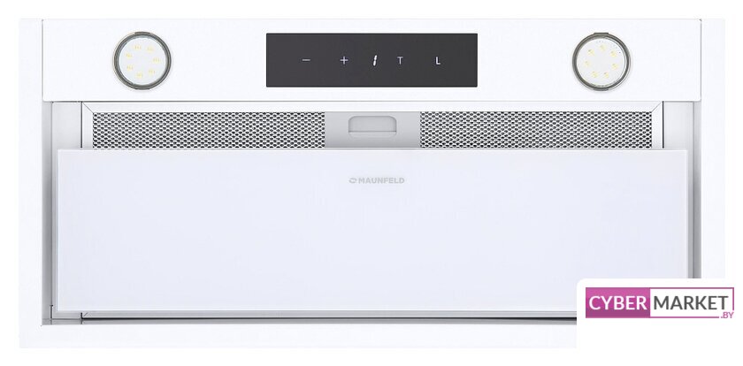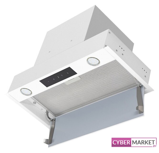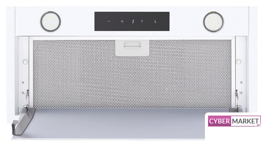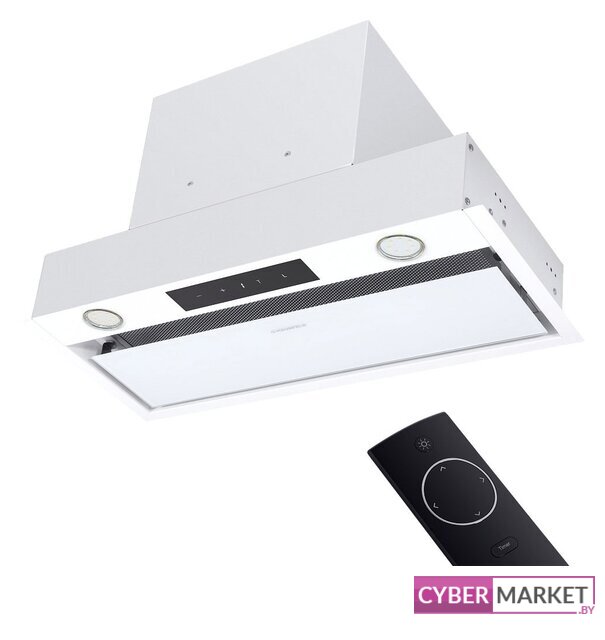 конструкция скрытая, монтаж для встраивания, ширина 73 см, управление электронное/кнопочное/дистанционное, производительность мотора 1250 м³/ч, цвет белый/нержавеющая сталь