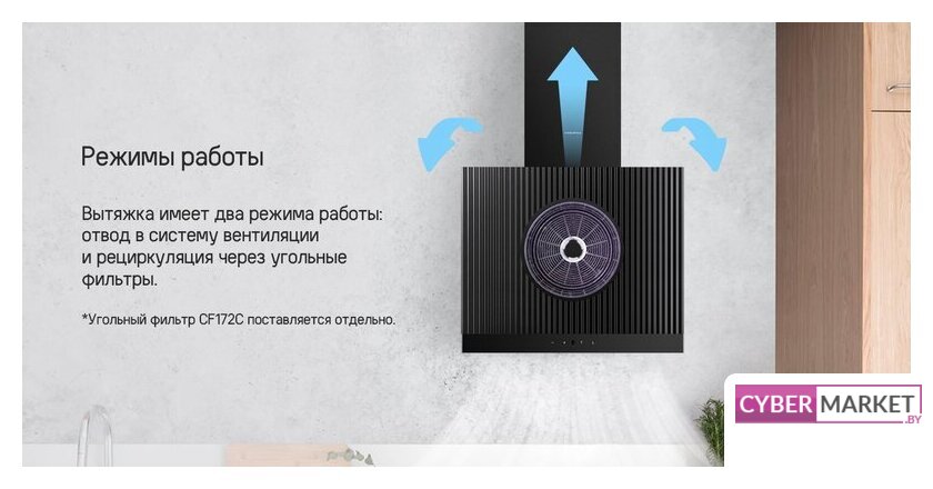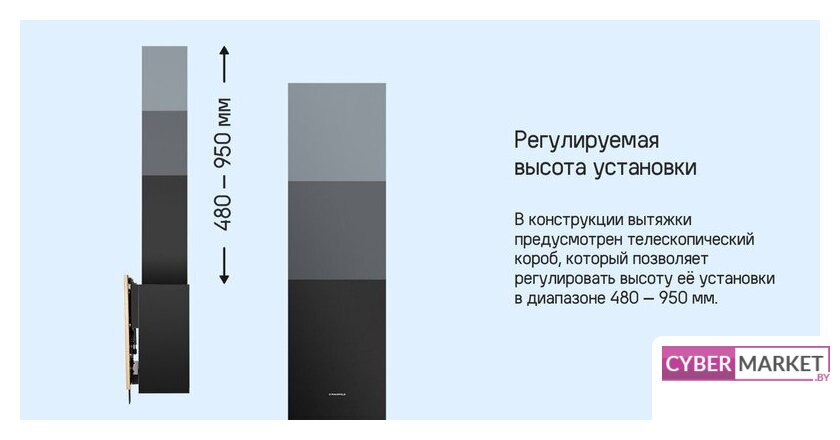 конструкция скрытая, монтаж для встраивания, управление электронное, производительность мотора 850 м³/ч, ширина 90 см