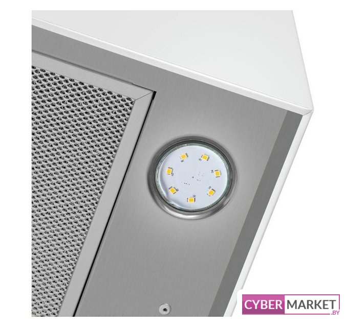 конструкция скрытая, монтаж для встраивания, ширина 71.4 см, управление электронное/кнопочное, производительность вытяжки 550 м³/ч, производительность мотора 1050 м³/ч, цвет белый
