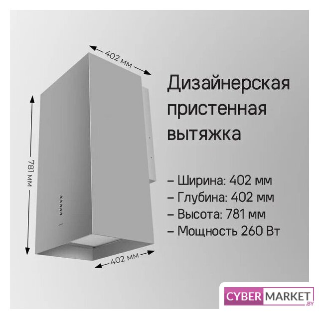 конструкция Т-образная, монтаж настенный, ширина 90 см, управление механическое/кнопочное, производительность мотора 850 м³/ч, цвет нержавеющая сталь