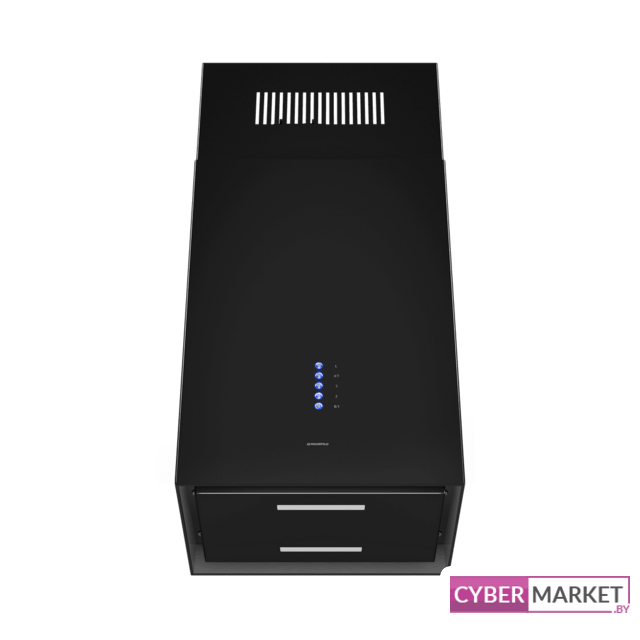 конструкция коробчатая, монтаж островной, ширина 39 см, управление сенсорное, производительность мотора 1000 м³/ч, цвет черный