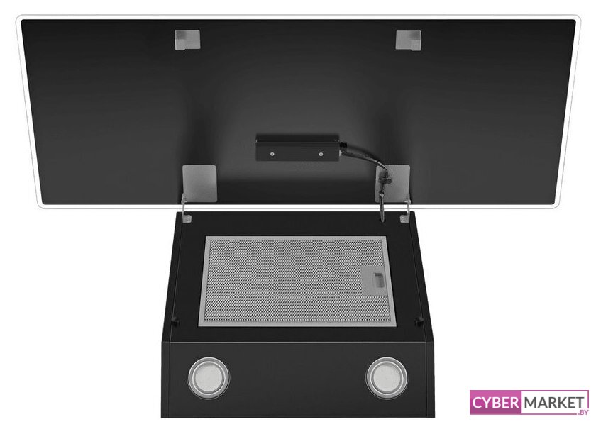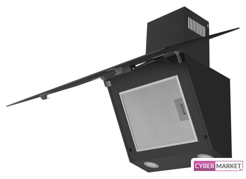 конструкция наклонная, монтаж настенный, ширина 60 см, управление механическое/кнопочное, производительность мотора 850 м³/ч, цвет черный