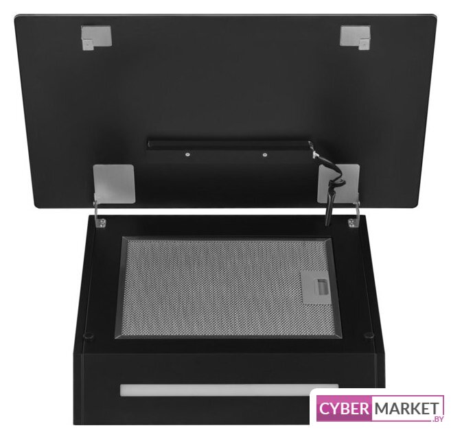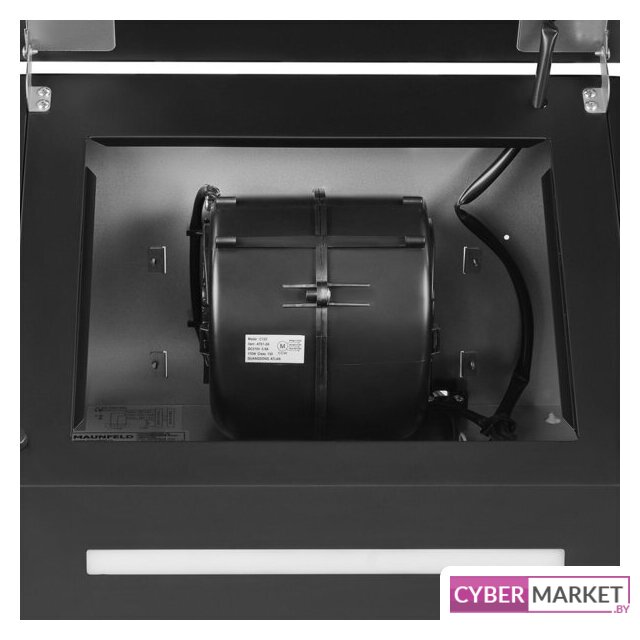 конструкция скрытая, монтаж для встраивания, ширина 53 см, управление электронное/кнопочное/дистанционное, производительность мотора 1100 м³/ч, цвет черный