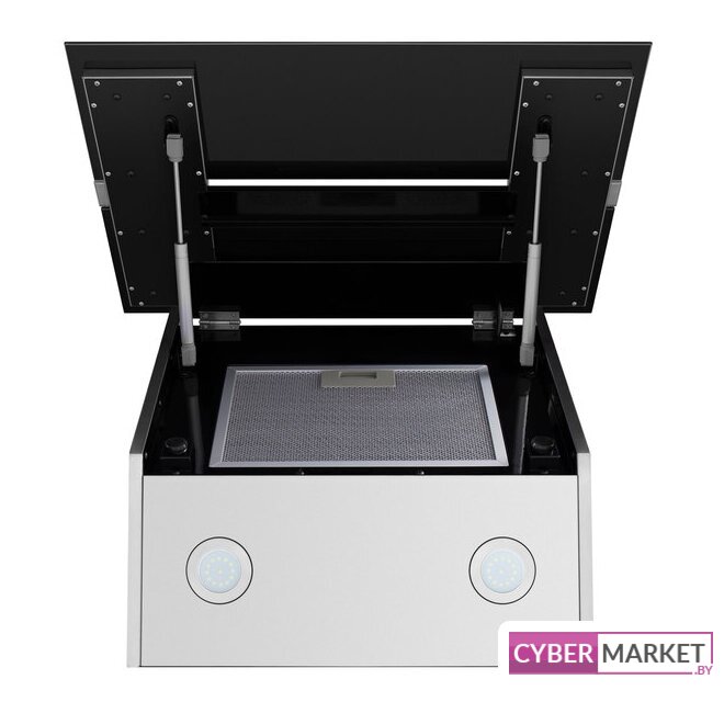 конструкция скрытая, монтаж для встраивания, ширина 79.5 см, управление механическое/кнопочное, производительность мотора 950 м³/ч, цвет нержавеющая сталь