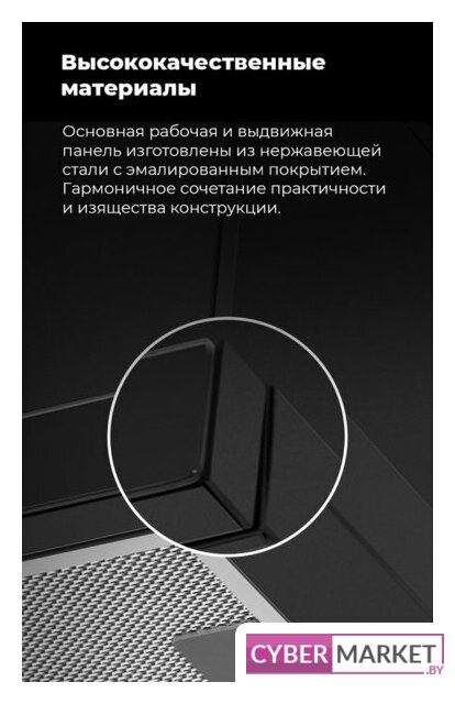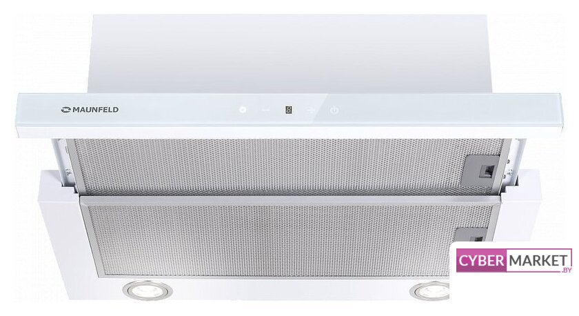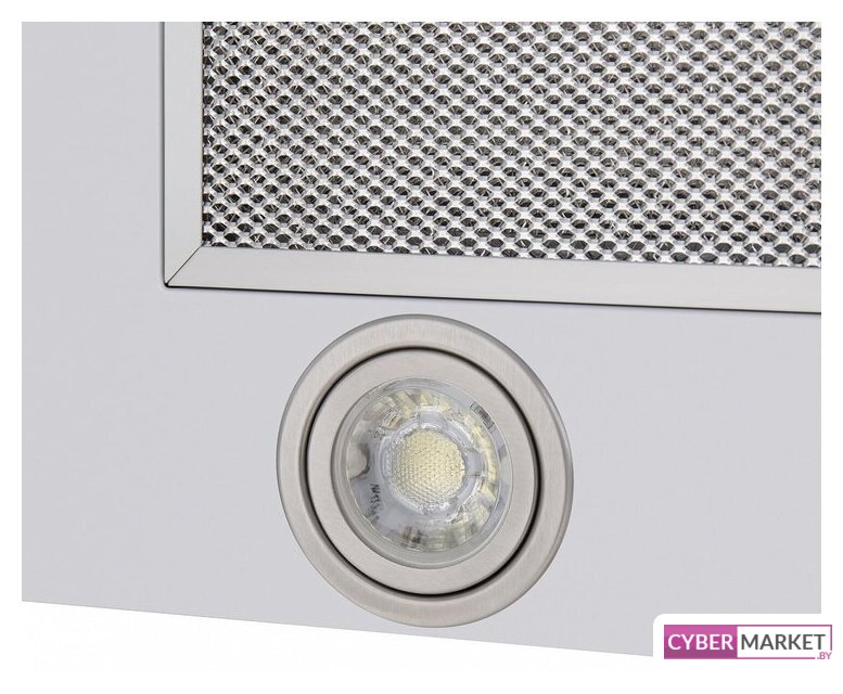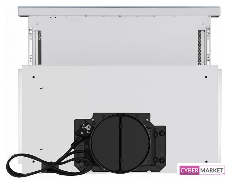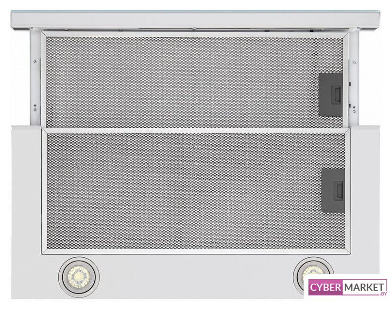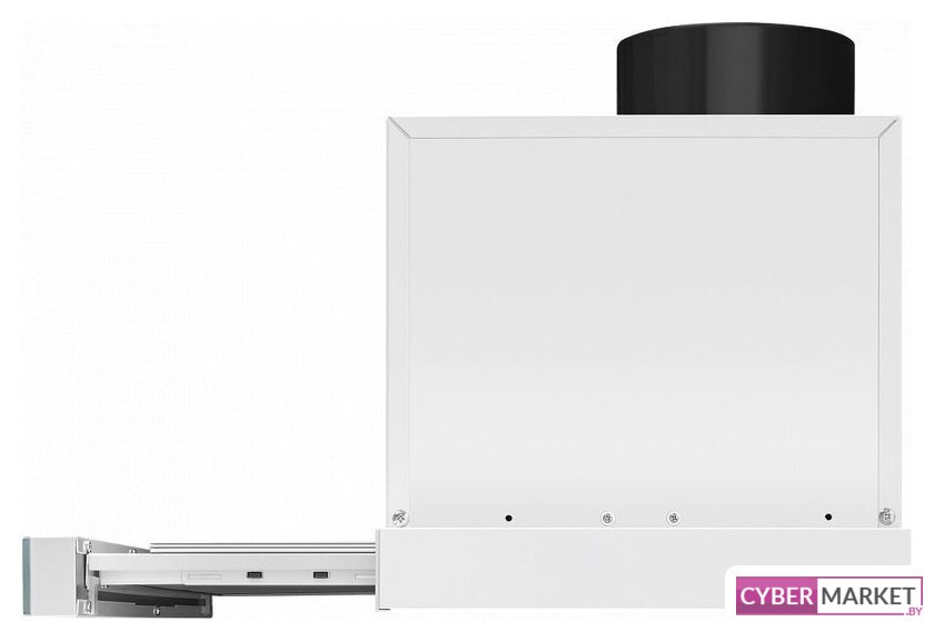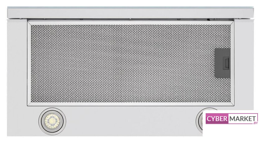 конструкция скрытая, монтаж для встраивания, ширина 53 см, управление кнопочное, производительность мотора 1100 м³/ч, цвет белый