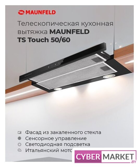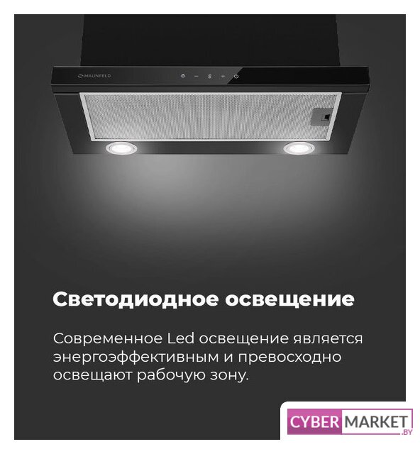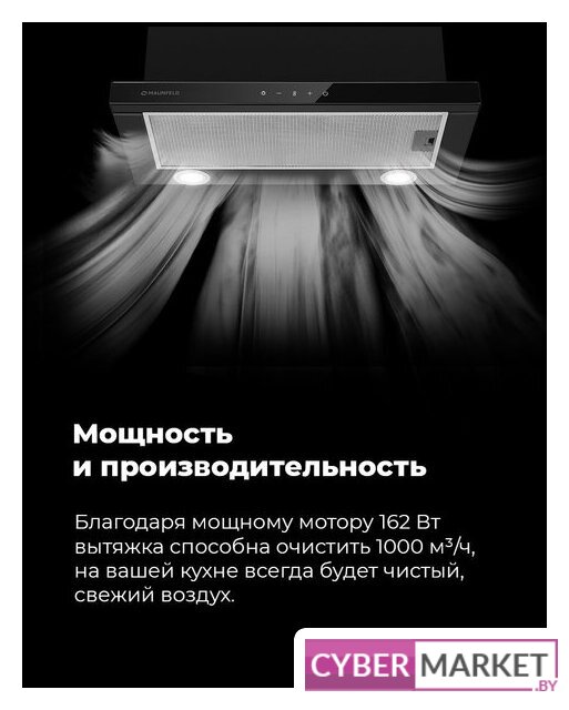 конструкция наклонная, монтаж настенный, ширина 59.7 см, управление сенсорное, производительность мотора 1020 м³/ч, цвет черный